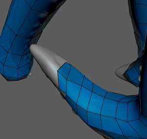 | While adding the basic shape to the tentacles helped dramatically with the quality of the low poly model, there were still issues. The tentacles looked unusually boxy and the ends of tentacles were too different from the original model, causing clipping errors. | The decision made was to delete the ends of the tentacles and quad draw the low poly tentacles to the high poly. | While extra work had to be made to re-make the tentacles and UV map, the end result looks significantly smoother and realistic compared to the previous model. | The tentacles look much more detailed when carried over to substance painter and unreal compared to the previous image |